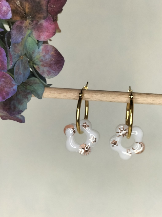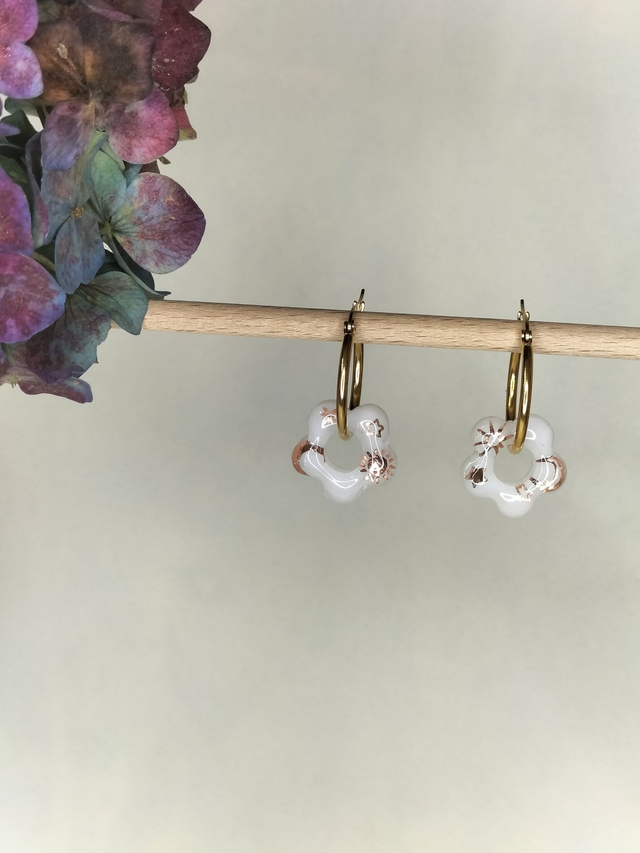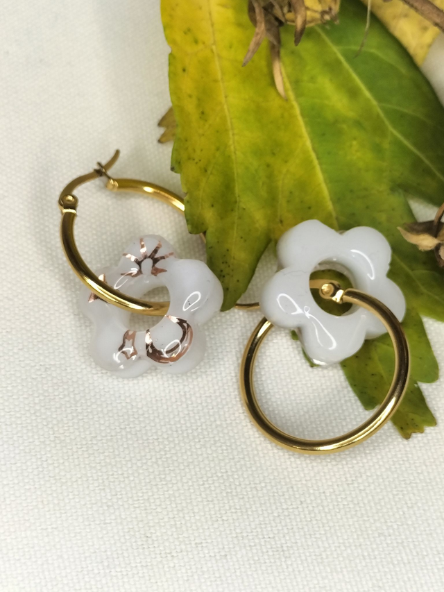 Boucles créoles et pampilles fleurs blanches