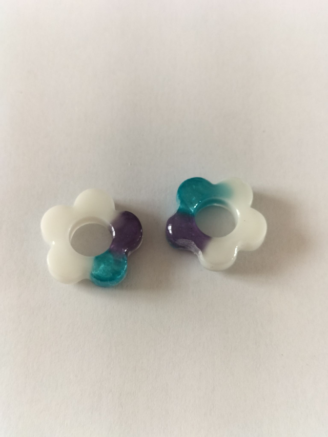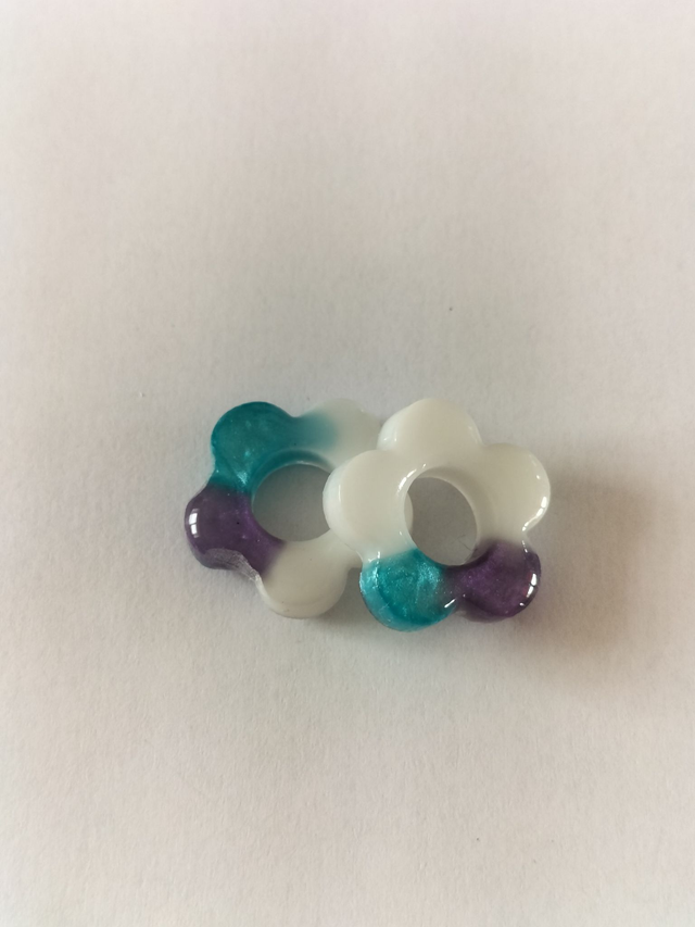 Pampilles fleurs blanches, touches de turquoise et de violet.