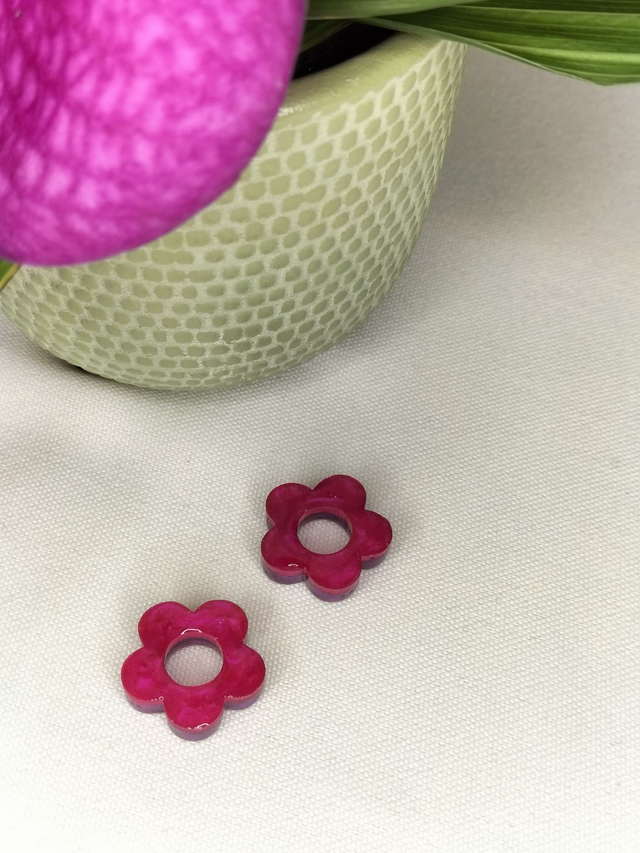 Créoles et pampilles fleurs réversibles flashy