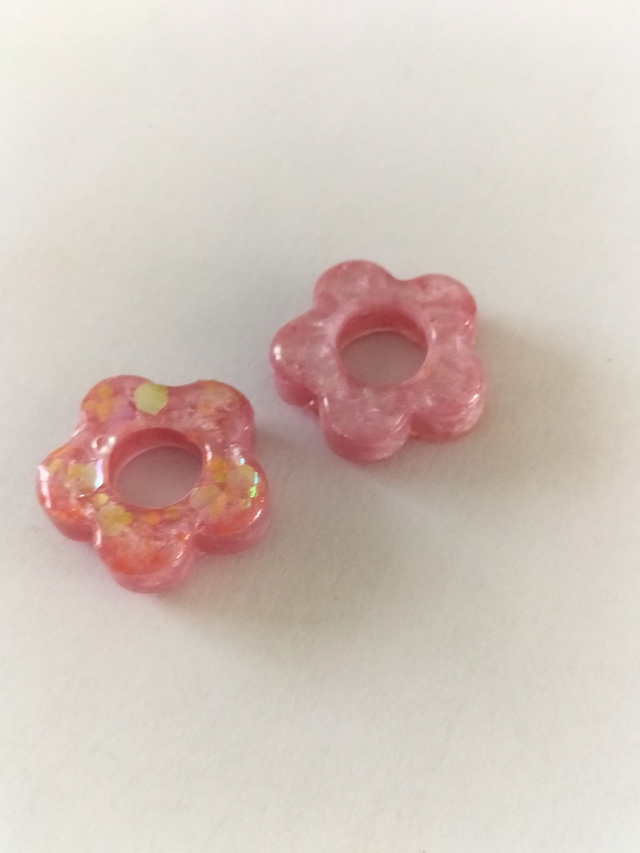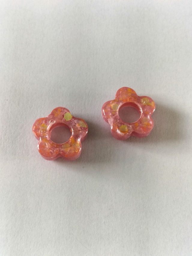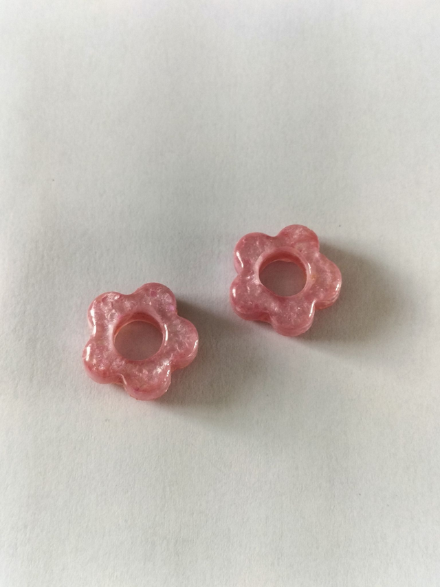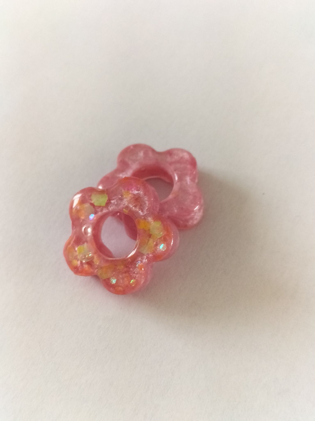 Pampilles fleurs roses irisées et pailletées 1,8 cm environ.