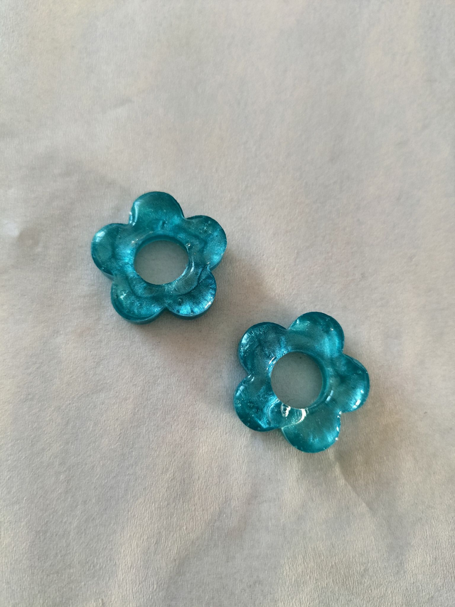 Pampilles fleurs turquoises irisées 1,8 cm environ.