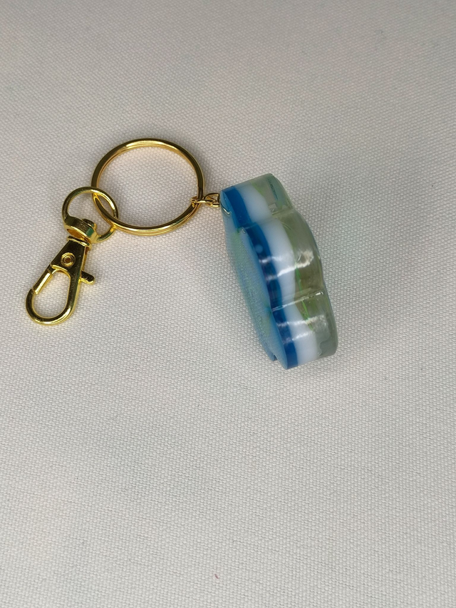Porte-clés bijou de sac "shaker" fleur bleu, blanc, jaune fluo